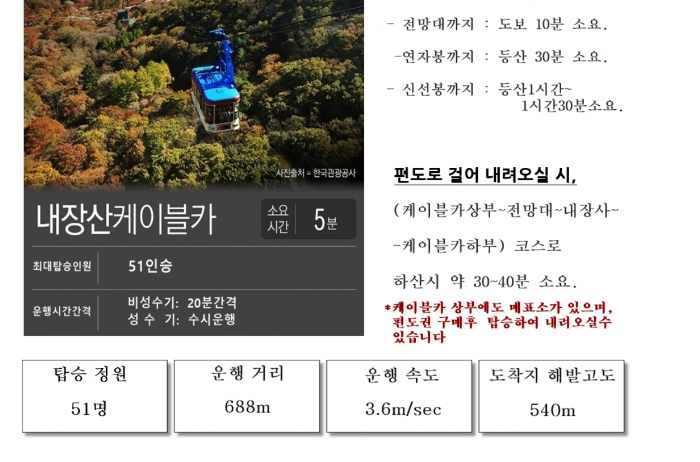 내장산 케이블카 2024년 가을 성수기 운영정보