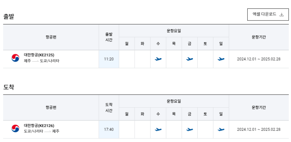 2. 노선 : 제주국제공항 - 도쿄 나리타