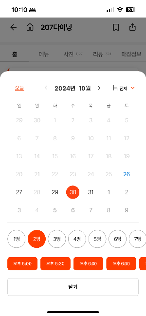3. 날짜 및 시간 선택: 방문하고 싶은 날짜와 시간대를 선택합니다. 캐치테이블은 실시간 예약 가능 테이블을 보여주므로 원하는 시간대를 바로 확인할 수 있습니다.