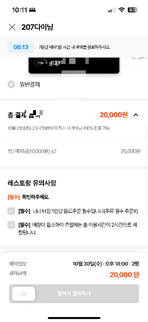 5. 예약 확인 및 완료: 예약 가능한 시간대가 표시되면 원하는 시간을 선택하고 예약을 완료합니다. 이때 특별 요청 사항이 있다면 메모를 통해 레스토랑에 전달할 수 있습니다. 일부 금액은 예약 보증금으로 결제 해야하는 경우도 있으니 잘 확인해주세요.