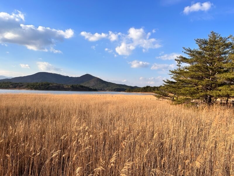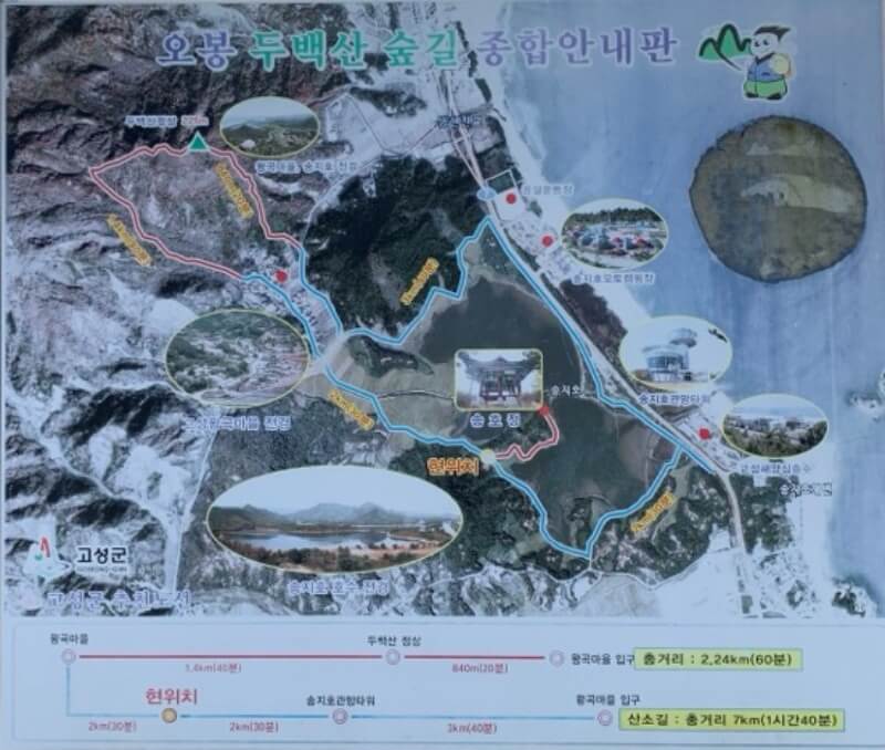 1) 송지호 : 오호항에서 조금만 더 위로 올라가면 도착하는 송지호입니다. 호수인데요, 전망대도 있고 산책로도 잘 조성되어 있어요. 호수 전체를 다 돌기에는 조금 힘드실 수도 있어요. 아래 코스 참고하셔서 그날 컨디션에 따라 코스를 짜주세요~