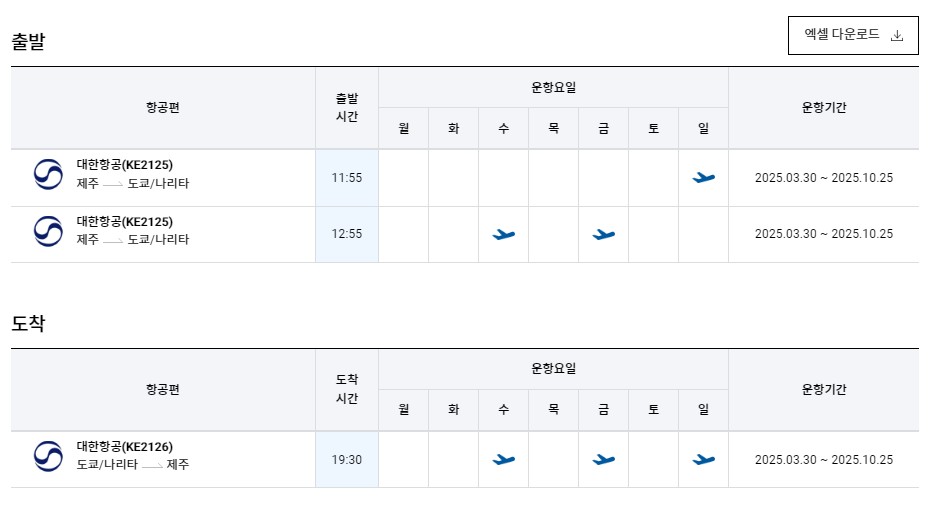 2. 노선 : 제주 - 도쿄 나리타